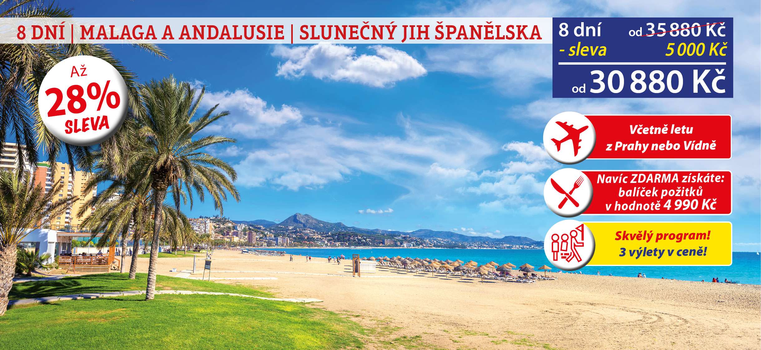 Cestujte pohodlně na letiště vlastním vozem. NIKAL za Vás již zaplatil parkovací místo na celou dobu Vaší cesty (nutné nahlásit při rezervaci). Startujeme z Prahy / Vídně do Malagy. Na letišti po příletu Vás srdečně přivítá průvodce a doprovodí Vás do hotelu, kde strávíte první 2 noci výletu. Večeře (v rámci balíčku požitků) a ubytování.